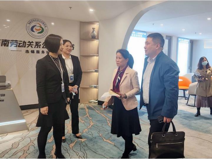 市人社局就業(yè)促進(jìn)科負(fù)責(zé)人劉剛和龍華區(qū)人社局局長陳明曉攜一行人先實地考察了??冢ń苠\)人力資源服務(wù)產(chǎn)業(yè)園和海口杰錦就業(yè)驛站,了解其規(guī)模布局、功能服務(wù)等情況。期間,還與海南就業(yè)驛站——海口杰錦人才就業(yè)服務(wù)站的工作人員進(jìn)行交談,了解2月10日在園區(qū)舉辦的“春風(fēng)行動”招聘會的具體情況以及招聘會的成效。