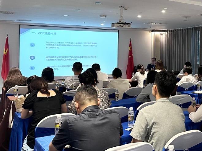 鄢敏副科長詳細(xì)地向各個企業(yè)介紹了海南自貿(mào)港稅收“雙十五”政策中符合按照15%征收企業(yè)所得稅的企業(yè)具體要求,對“生產(chǎn)經(jīng)營、人員、財(cái)務(wù)、資產(chǎn)”四要素的內(nèi)容進(jìn)行了深入的解讀。