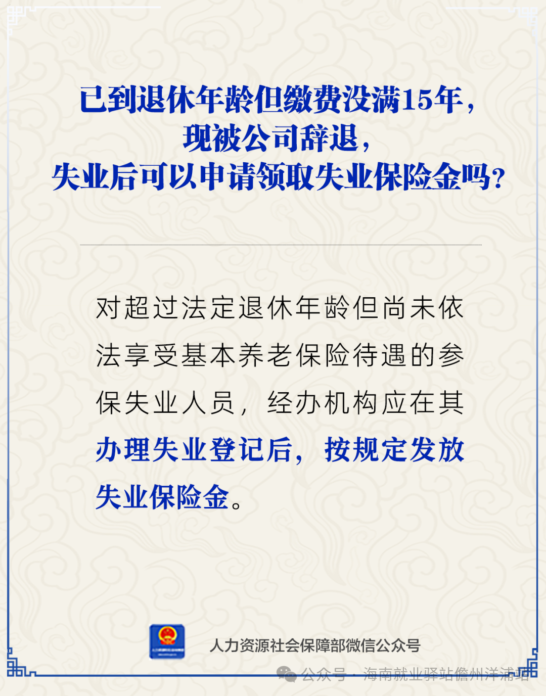 已到退休年齡但繳費(fèi)沒(méi)滿15年,現(xiàn)被公司辭退,失業(yè)后可以申請(qǐng)領(lǐng)取失業(yè)保險(xiǎn)金嗎?