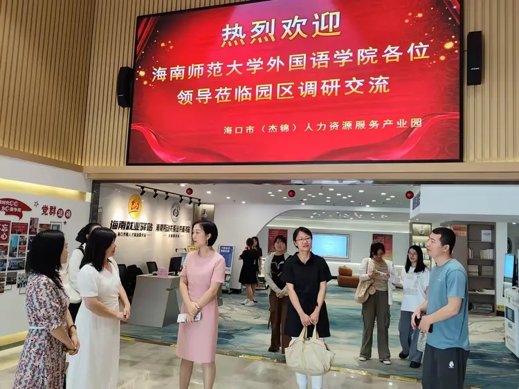 為貫徹落實(shí)“訪企拓崗”促就業(yè)專項(xiàng)行動(dòng)工作部署,尋求校企合作機(jī)會(huì),拓寬畢業(yè)生就業(yè)渠道,促進(jìn)2024年高校畢業(yè)生高質(zhì)量就業(yè),同時(shí)進(jìn)一步發(fā)展實(shí)習(xí)、就業(yè)基地,5月29日上午,海南師范大學(xué)外國語學(xué)院黨委副書記楊白全率隊(duì),商務(wù)英語系主任游艷、日語系主任汪宇、就業(yè)負(fù)責(zé)人鐘亨任、朱大珩一行5人,以及英語系應(yīng)屆畢業(yè)生7人,到??谑校ń苠\)人力資源服務(wù)產(chǎn)業(yè)園進(jìn)行調(diào)研交流。